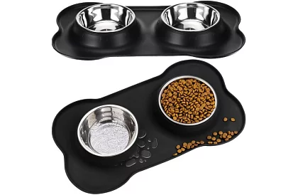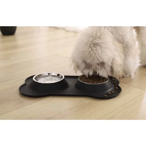 Praktické a čisté riešenie kŕmenia, ktoré prináša pohodlie maznáčikovi a poriadok domácnosti. Kombinácia dvoch nerezových misiek a stabilnej silikónovej podložky umožňuje mať krmivo aj vodu na jednom mieste, bez posúvania, rozlievania a neporiadku okolo.