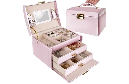 • Priestranná: 20 priehradiek, 3 zásuvky a valcové výklenky pre dokonalé usporiadanie šperkov