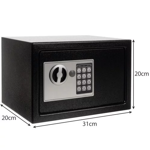 Trezor kombinuje moderný elektronický zámok s klasickým kľúčom a ponúka vysokú úroveň zabezpečenia pre domácnosť, kanceláriu alebo hotelovú izbu. Vďaka priestrannému interiéru je ideálny na uloženie cenných predmetov, dokumentov alebo platobných prostriedkov.