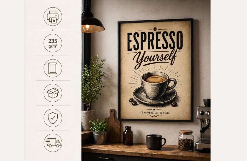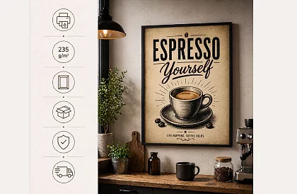 Doprajte svojmu interiéru štýlový doplnok v podobe elegantného obrazu s motívom kávy. Nadčasové prevedenie a jemný dizajn ľahko zapadnú do kuchyne, pracovne, jedálneho kúta i domáceho coffee corneru. Kvalitný tlač na odolnom fotografickom papieri zaručuje ostré detaily a výrazné farby. Obraz je ideálny tiež ako vkusný darček pre milovníkov kávy.