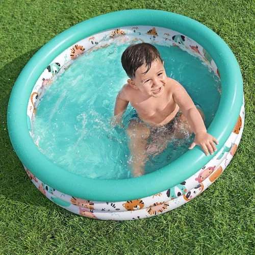 Zabezpečte svojim deťom radosť a bezpečnosť s týmto farebným nafukovacím bazénom, ktorý je ideálny ako pre vodné hry, tak aj ako suchý bazén na loptičky. Vďaka mäkkým stenám a stabilnej konštrukcii poskytuje bazén pohodlnú a bezpečnú zábavu pre najmenších a rodičia sa môžu tešiť na pokoj. Ľahký a ľahko skladný, dá sa vziať do záhrady, na terasu alebo na dovolenku.