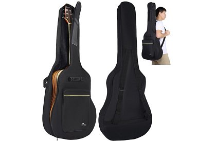 Puzdro na gitaru je praktickým a odolným doplnkom pre študentov hudobných škôl aj profesionálnych hudobníkov. Vďaka nastaviteľným popruhom je možné prispôsobiť výšku pre deti aj dospelých, čo zaisťuje pohodlné nosenie aj na dlhé vzdialenosti. Puzdro je vyrobené odolne proti poškodeniu a chráni gitaru pri každodennom cestovaní. Má dve vrecká – horné pre menšie príslušenstvo, ako je kapodaster alebo trsátka, a spodné vrecko vhodné pre formát A4, kam ľahko uložíte notový zápis a drobnosti. Puzdro je vhodné pre gitary do veľkosti 41 palcov (maximálny rozmer 105/41 cm) a spodná časť je vystužená pre bezpečné nosenie vybavenia.
