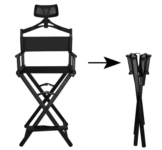 Profesionálne make-up kreslo s opierkou hlavy je ideálne pre líčenie, vizáž aj režisérske účely. Je skladacie, vyrobené z čierneho hliníka a sedák z vodoodolného materiálu Oxford 600D. Kreslo je navyše vybavené pohodlnou opierkou hlavy a podnožkou pre maximálny komfort pri dlhom sedení. Konštrukcia je stabilná a nosnosť až 140 kg zaisťuje bezpečné používanie. Vďaka ľahkému rámu a jednoduchému skladaniu sa kreslo pohodlne prenáša a ukladá, ideálne pre mobilných vizážistov aj stacionárne salóny.