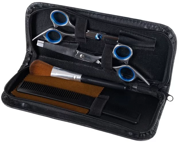 • Dva páry nožníc – klasické a efilačné s 27 zubami