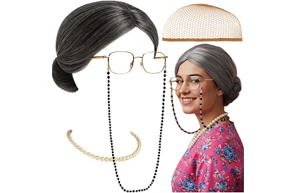 Klasický kostým babičky s parukou v drdolu, okuliarmi a perlovým náhrdelníkem ponúka kompletný outfit pre Halloween, kostýmové večierky či divadelné vystúpenia. Univerzálna veľkosť a ľahká konštrukcia zaisťujú pohodlné nosenie, zatiaľ čo autentický vzhľad a detaily okamžite priťahujú pozornosť a vyvolávajú úsmev.