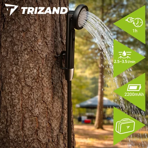 Sprcha ponúka pohodlné a hygienické riešenie kdekoľvek na kempovaní, cestovaní alebo na záhrade. Vďaka bezdrôtovému prevádzke poskytuje stály prúd vody bez nutnosti pripojenia k inštalácii, zatiaľ čo batéria 2200 mAh umožňuje až 60 minút komfortného používania. Dlhá hadica 1,8 m a konštantný prietok 3,5–4 l/min zabezpečujú pohodlné sprchovanie ako doma. Vodotesnosť IPX8/IPX4 a praktické USB nabíjanie z powerbanky alebo auta umožňujú bezpečné používanie v teréne. Súčasťou je puzdro so zipsom, ktoré udržuje všetky komponenty prehľadne uložené.