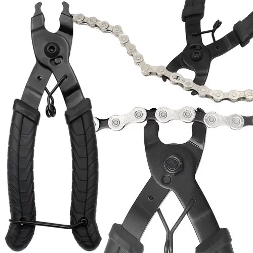 Kliešte na reťaz sú spoľahlivým a odolným nástrojom pre rýchle pripájanie a odpojovanie spon reťazí. Konštrukcia z uhlíkovej ocele zaisťuje vysokú pevnosť a dlhú životnosť, ideálna aj pre prácu s hrdzavými alebo silne znečistenými reťazami. Ergonomická rukoväť s protišmykovým silikónovým povrchom poskytuje bezpečný úchop a pohodlie pri dlhodobom používaní, zatiaľ čo kompaktné rozmery umožňujú jednoduché skladovanie a prenášanie.