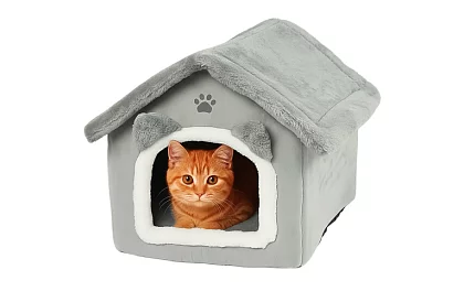 • Typ produktu – pelíšok pre mačky s búdou a strieškou