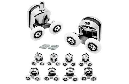 Kolieska pre sprchový kút zabezpečia hladké otváranie a zatváranie dverí a chránia ich proti vypadnutiu z vedenia. Chrómované valčeky vyzerajú esteticky a ich dvojitá konštrukcia zabezpečuje pevné držanie skla. Sada obsahuje aj nárazníky na ochranu pojazdových systémov, ktoré sa montujú do horného aj spodného profilu kabíny. Ideálne na výmenu opotrebovaných alebo poškodených koliesok.