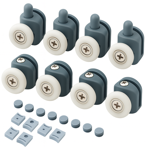 Sada horných a spodných koliesok je ideálna pre jednoduché a plynulé otváranie sprchových kútov. Kolieska sú vyrobené z odolného plastu a kovu, odolného voči korózii, a pasujú do väčšiny sprchových kabín. Systém umožňuje rýchlu výmenu, jednoduchú montáž aj vybratie skla na čistenie bez demontáže valčekov.