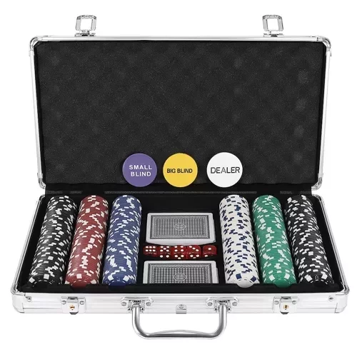 Kompletná sada na hranie Texas hold'em a ďalších kartových hier poskytuje všetko, čo hráč potrebuje. Žetóny s kovovým diskom vo vnútri zabezpečujú optimálnu hmotnosť a odolnosť, čo prináša profesionálny pocit pri každej hre. Hliníkový kufor s ergonomickou rukoväťou umožňuje pohodlné prenášanie a bezpečné skladovanie všetkých komponentov, zatiaľ čo špeciálne vložky a stabilizačná pena chránia obsah počas transportu. Sada zahŕňa žetóny funkcií, ktoré zjednodušujú hru a udržiavajú poriadok počas rozdaných kôl.