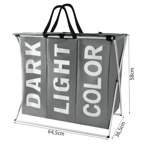 Priestranný a praktický kôš na prádlo vám uľahčí triedenie špinavého prádla hneď od začiatku. Vďaka trom samostatným priehradkám môžete oddeliť tmavé, svetlé a farebné prádlo a zapojiť aj ostatných členov domácnosti. Vodotesný vnútro chráni vonkajšiu časť koša pred znečistením a pevný rám zabezpečuje stabilitu. Vďaka modernej bielo-šedej kombinácii štýlovo zapadne do každého interiéru.