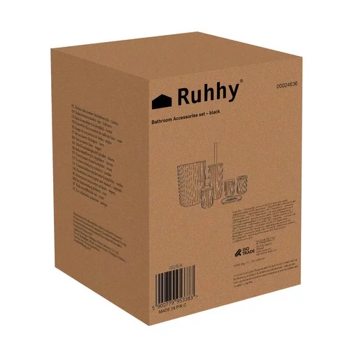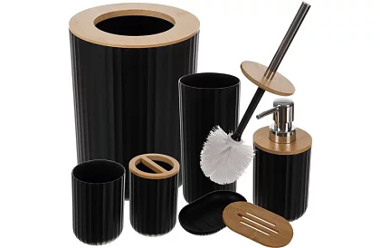 Vysokokvalitná sada 6 kúpeľňových doplnkov kombinuje funkčnosť, eleganciu a moderný dizajn. Čierna farba s ryhovaným povrchom a bambusovými detailmi dodáva kúpeľni štýl a zároveň zaisťuje komfort a hygienu používania. Každý prvok sady je navrhnutý tak, aby bol praktický, odolný a ľahko udržiavateľný, čo robí sadu ideálnou voľbou pre každodenné použitie aj ako darček.