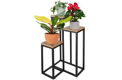 Moderný kovový loftový stojan na kvety je ideálny pre rastliny a kvetináče v obývacej izbe, kancelárii, záhrade, na balkóne alebo v hale. Pevná konštrukcia z kovu a MDF zaisťuje stabilitu a bezpečné umiestnenie rastlín, zatiaľ čo vyrovnávacie nožičky chránia podlahu pred poškriabaním. Geometrický dizajn zapadá do rôznych interiérov, od industriálneho loftu po klasický štýl. Tri úrovne umožňujú efektívne vystavenie rastlín a vytvárajú atraktívnu priestorovú kaskádu. Montáž je rýchla a jednoduchá vďaka kompletnému setu príslušenstva a obrázkovému návodu.