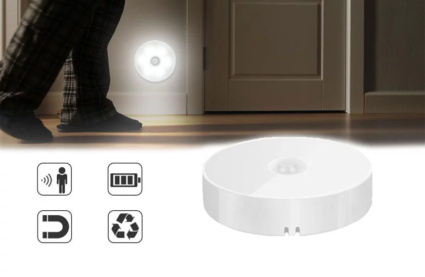 LED nočné svetlo na senzor. Praktické nočné osvetlenie v domácnosti i na pracovisku. Ideálne na osvetlenie miestnosti, chodby, schodišťa, skrine apod. LED nočné svetlo má podobu malého guľatého svetla. LED svetlo využijete v každom priestore. Aktivuje a rozsvieti sa pohybom.