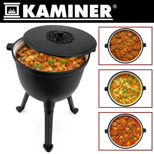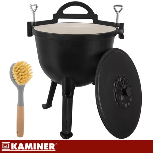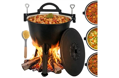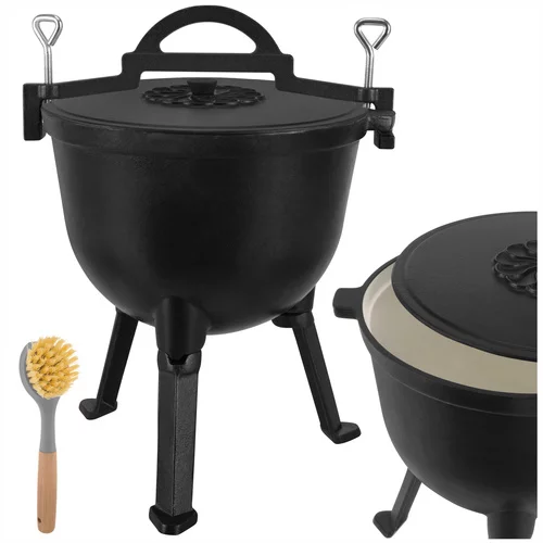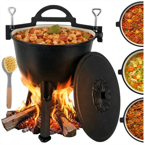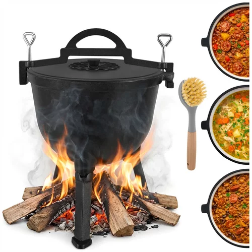 Varenie na ohni môže byť jednoduché a bezpečné s litinovým kotlíkom o objeme 10 litrov, ktorý ponúka rovnomerné rozloženie tepla a vysokú odolnosť voči teplotám. Smaltovaný vnútro uľahčuje čistenie a eliminuje nutnosť impregnácie po každom použití. Ideálne na prípravu vydatných jedál na táborení, v krbe alebo na záhrade, kotlík kombinuje funkčnosť s pohodlnou manipuláciou vďaka odnímateľným nohám a praktickému držadlu.