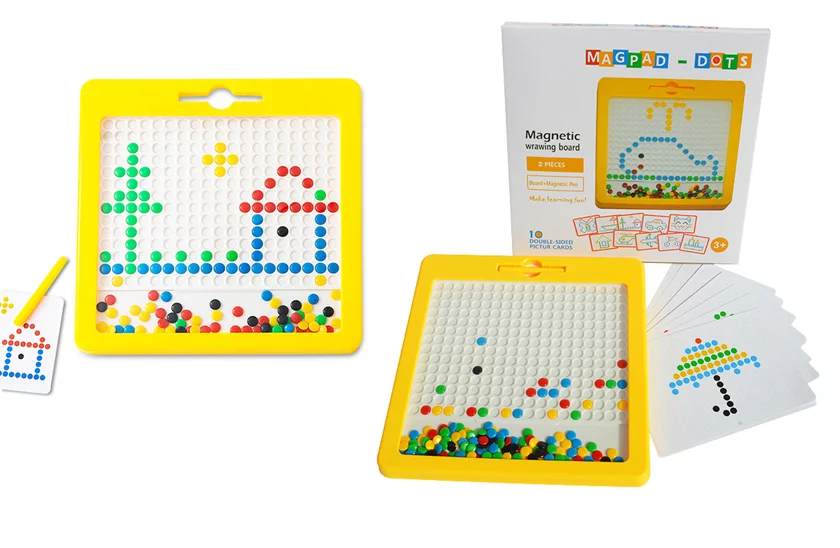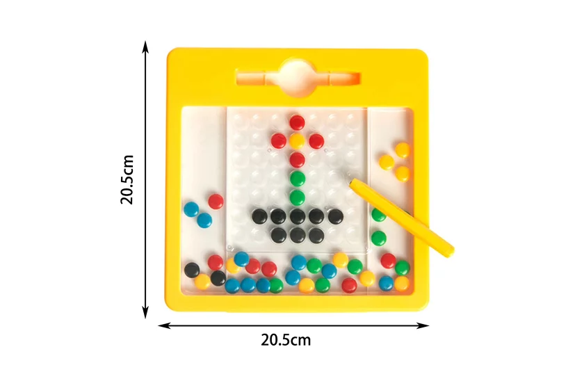 Magnetická tabuľka je kúzelná tabuľka, ktorá deťom poskytuje úplnú voľnosť vo vytváraní farebných tvarov a vzorov. U detí rozvíja jemnú motoriku, podporuje koordináciu ruka - oko, prebudí v nich fantáziu a túžbu a na vlastnú tvorbu. Vo vnútri tabuľky sú farebné kovové šošovky. Magnetická kresliaca tabuľka pre deti je pohodlne prenosná, zmestí sa do každé cestovnej tašky. Je to perfektná hračka na dlhé výlety.