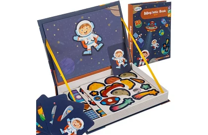 Magnetická puzzle knižka rozvíja kreativitu, predstavivosť a jemnú motoriku. Deti môžu vytvárať vlastné vesmírne scény pomocou farebných magnetov a inšpirovať sa obojstrannými kartami so vzormi. Kompaktné prevedenie vo forme knihy umožňuje pohodlné prenášanie a zaisťuje, že všetky prvky zostanú počas hry na svojom mieste. Hra podporuje koordináciu oko–ruka, priestorové vnímanie a logické myslenie.