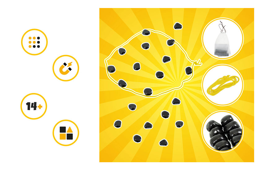 Hráči striedavo pokladajú magnetické kamene na hernú plochu a snažia sa zbaviť všetkých svojich kameňov. Ale pozor – ak sa kamene pritiahnu a spoja, musíte ich vziať späť! Každé kolo je plné napätia a nečakaných momentov.