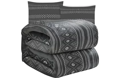 Mäkká deka s dvoma povlakmi na vankúše je skvelým doplnkom zimného interiéru. Sada je vyrobená prevažne z mikrovlákna, ktoré zaručuje neuveriteľnú mäkkosť a nadýchanosť látky. Najvýraznejšie sú vianočné motívy v šedej farbe s bielymi doplnkami, ktoré predstavujú klasiku zimného dekoru.