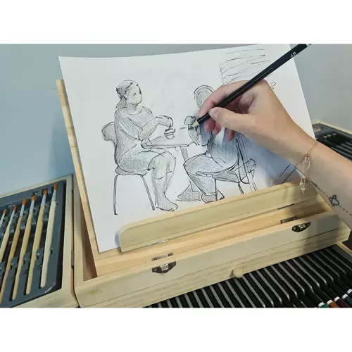 Obrovský výber 83 prvkov umožňuje rozvinúť kreativitu a fantáziu každého umelca. Maliarska súprava obsahuje všetko, čo potrebujete na tvorbu sofistikovaných a originálnych umeleckých diel – od štetcov, ceruziek a pasteliek až po farby a stojan. Vďaka praktickému drevenému kufru so stojanom je prístup k jednotlivým komponentom rýchly a pohodlný, a všetky prvky sú prehľadne usporiadané, takže sa ľahko udržuje poriadok a bezpečnosť pri používaní.