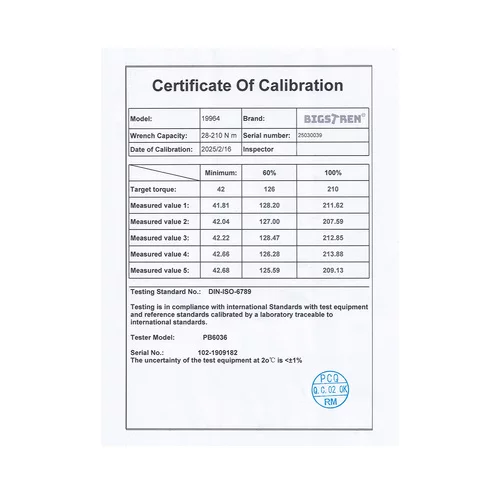 • Pravidelne kalibrujte kľúč a uistite sa o správnom nastavení pred použitím