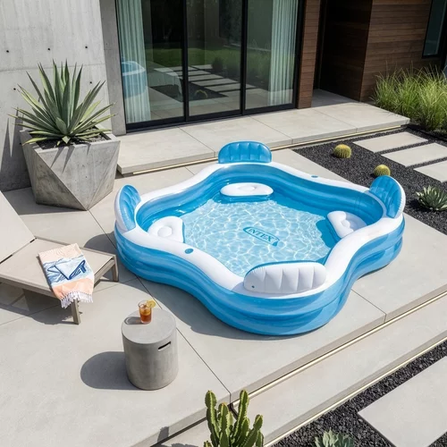 Doprajte si pohodové letné osvieženie priamo na záhrade vďaka nafukovaciemu bazénu s vstavanými sedadlami, ktorý kombinuje relaxáciu aj zábavu pre celú rodinu. Integrované sedadlá s opierkami umožňujú komfortný odpočinok bez nutnosti ďalšieho vybavenia, zatiaľ čo priestranný objem vody poskytuje dostatok miesta pre viac osôb. Rýchla inštalácia počas niekoľkých minút a odolný PVC materiál zaručujú bezstarostné používanie po celé leto.