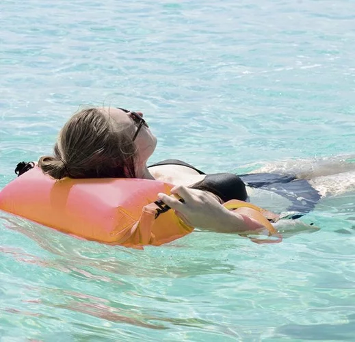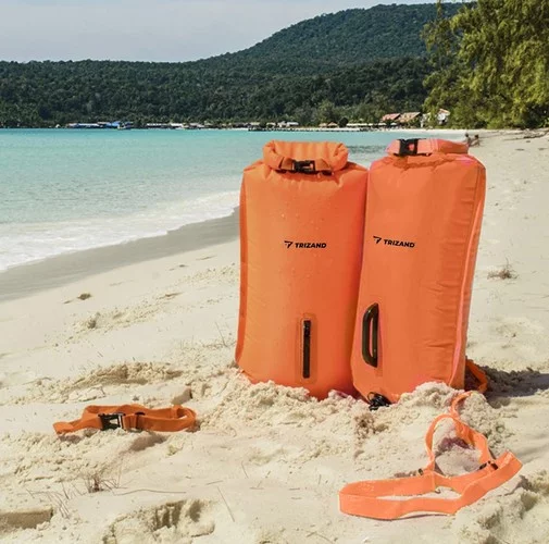 Nafukovacia plavecká bójka 2 v1 zabezpečuje bezpečnosť a komfort pri plávaní na otvorenej vode. Vďaka ergonomickému tvaru a nastaviteľnému popruhu sa prispôsobí pásu a neobmedzuje voľnosť pohybu, takže plávanie je pohodlné a bezpečné.