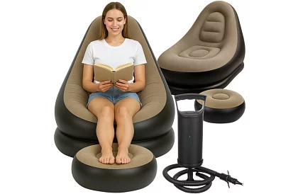 Nafukovacie kreslo poskytuje komfortné a pohodlné sedenie doma aj vonku. Silná a odolná konštrukcia z PVC potiahnutého mäkkým materiálom imitujúcim samet zabezpečuje dlhú životnosť a odolnosť proti náhodnému prepichnutiu. Ergonomický tvar a mäkké sedadlo umožňujú pohodlnú relaxáciu, sledovanie filmov alebo čítanie, a vďaka maximálnej nosnosti 120 kg je vhodné pre dospelých aj deti.