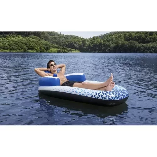 Užite si pohodlnú relaxáciu pri vode s odolným a praktickým nafukovacím lehátkom. Pevná opierka hlavy poskytuje komfort pri hodinách oddychu v bazéne či pri jazere. Integrovaný otvor na nápoje umožňuje pohodlné posedenie s obľúbeným drinkom, zatiaľ čo dvojité ventily zabezpečujú bezpečné nafúknutie bez úniku vzduchu. Súčasťou balenia je vodoodolná opravná záplata pre rýchlu opravu kedykoľvek a kdekoľvek.