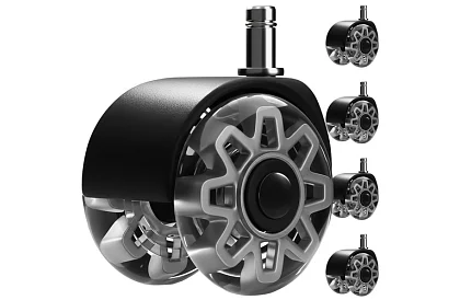 Tichý pohyb bez vrzania a bez škrabancov na podlahe. Kvalitné kolieska s oceľovými ložiskami a mäkkým PU povrchom zabezpečujú plynulú jazdu po parketách, dlažbe aj kobercoch bez nutnosti ochranné podložky. Zosilnená konštrukcia ponúka vysokú odolnosť a dlhú životnosť, zatiaľ čo univerzálna stopka 11 × 22 mm umožňuje rýchlu výmenu bez použitia náradia. Stačí vybrať staré kolieska a počas minúty nasadiť nové.