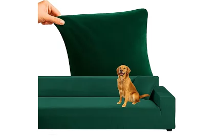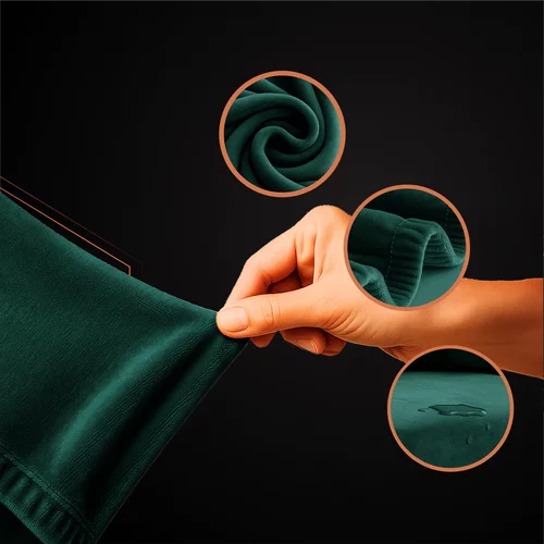 Potah RUHHY z mäkkého a pružného sametu účinne ochráni a osvieži pohovku. Prispôsobí sa tvaru nábytku, drží stabilne na mieste a dodá interiéru útulný a elegantný nádych. Zelená farba ladí s mnohými štýlmi interiéru a veľkosť 145–185 cm sa hodí na väčšinu štandardných rohových pohoviek.