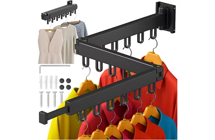 Praktický sušák na prádlo a vešiak na oblečenie je ideálnym riešením pre malé priestory. Po montáži na stenu nezaberá žiadne miesto na podlahe. Vďaka skladacej a rozkladacej konštrukcii je možné veľkosť prispôsobiť množstvu prádla a po použití sušák ľahko zložiť. Pevná konštrukcia zaručuje stabilitu a odolnosť aj pri väčšom zaťažení. Štýlový a pohodlný doplnok na sušenie a ukladanie oblečenia doma, v kúpeľni alebo na balkóne.