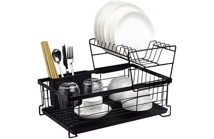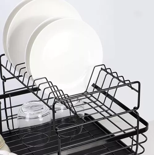 Dvojaká sušička ponúka praktické a elegantné riešenie pre usporiadanie riadu v kuchyni. Vďaka kvalitnému pochromovanému kovu je odolná voči vlhkosti a poškodeniu, zatiaľ čo loftový dizajn dodáva moderný vzhľad, ktorý ladí s rôznymi typmi interiérov. Odnímateľný odkvapkávač na príbory a praktický zásobník na vodu zabezpečujú komfortné používanie a udržiavanie poriadku.