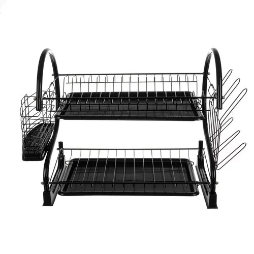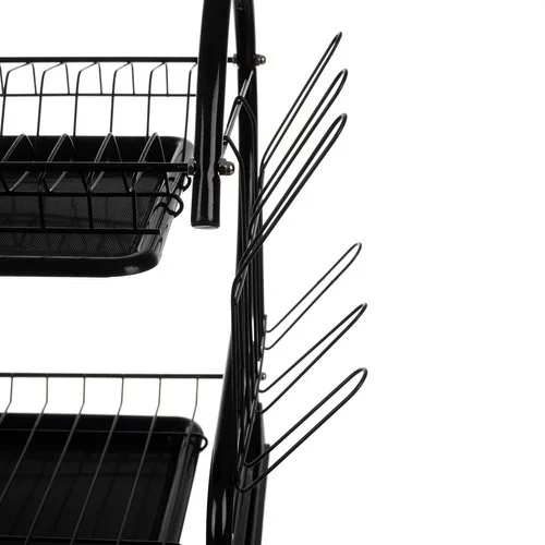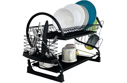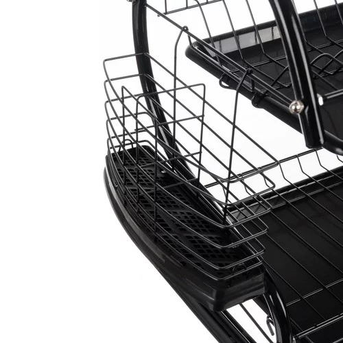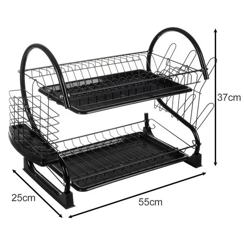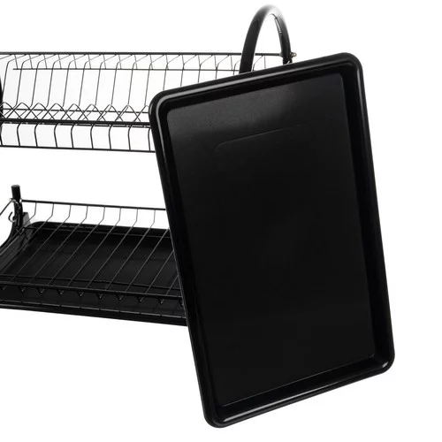 Dvojposchodový odkvapkávač na riad spája moderný dizajn s praktickou funkčnosťou. Pevná konštrukcia z odolného železa s práškovou čiernou povrchovou úpravou zabezpečuje stabilitu, odolnosť voči korózii a elegantný vzhľad, ktorý sa hodí do každej kuchyne. Súčasťou sady sú skrutky a kľúč pre rýchlu a jednoduchú montáž.