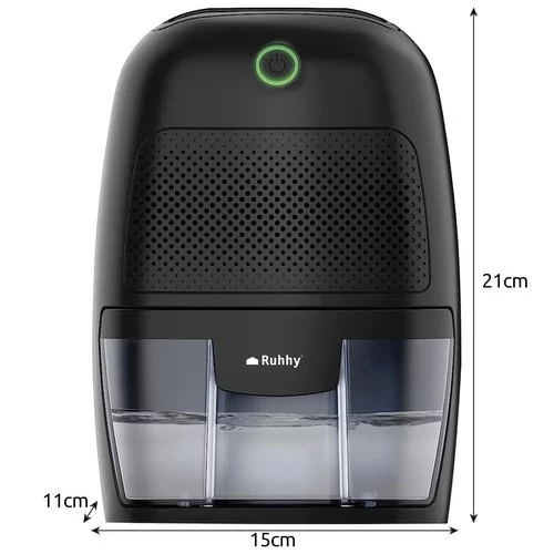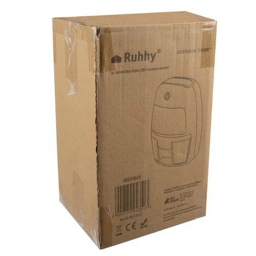 Odvlhčovač RUHHY účinne odstraňuje nadbytočnú vlhkosť zo vzduchu, zabraňuje tvorbe plesní, húb a nepríjemného zápachu. Nepotrebujete chemikálie ani vložky a jeho kapacita až 300 ml za deň zabezpečí optimálnu vlhkosť v domácnosti alebo kancelárii. Vďaka tichému chodu je vhodný do spální aj izieb s deťmi a kompaktné rozmery umožňujú jeho jednoduché umiestnenie na stôl, komodu či podlahu. Automatické vypnutie po naplnení nádržky a nízka spotreba energie zabezpečujú komfortný a úsporný chod.