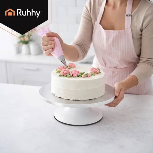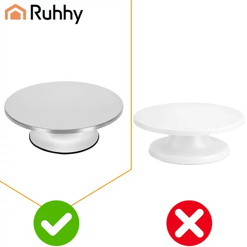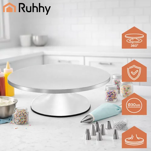 Chcete pohodlne zdobiť torty, servírovať dezerty a mať pri práci lepšiu kontrolu? Tento otočný stojan Ruhhy je praktický pomocník pre každého, kto pečie doma aj pravidelne tvorí cukrárske dekorácie. Vďaka plynulému otáčaniu a stabilnej konštrukcii bude zdobenie rýchlejšie, presnejšie a pohodlnejšie. Rotácia o 360° umožňuje jednoduchý prístup ku každej strane torty bez nutnosti neustáleho posúvania.