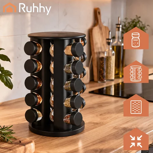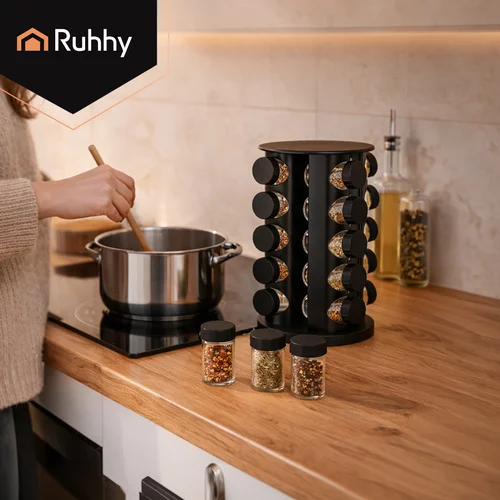 Chcete mať v kuchyni poriadok a všetko korenie vždy rýchlo po ruke? Táto sada dóz na korenie Ruhhy s otočným stojanom prináša praktické a elegantné riešenie pre každodenné varenie. Vďaka prehľadnému usporiadaniu budete mať obľúbené korenie vždy na dosah a varenie bude rýchlejšie aj pohodlnejšie. Otočný stojan o 360° umožňuje jednoduchý prístup ku všetkým dózam bez zdĺhavého hľadania.