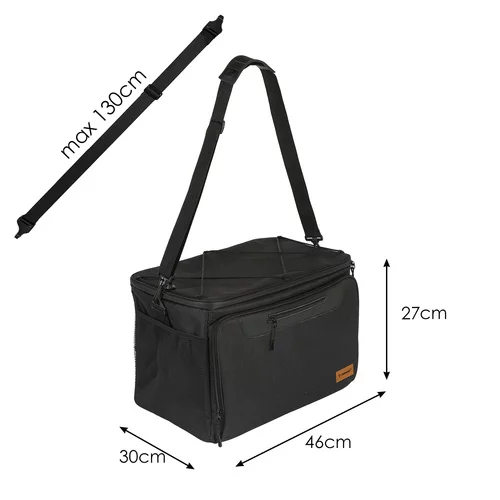 Udržuje jedlo a nápoje čerstvé vďaka tepelnému izolačnému vrstve, ktorá efektívne zachováva nízke aj vysoké teploty. Ideálne pre jednodenné výlety, pikniky alebo grilovanie, umožňuje pohodlne zbaliť všetko potrebné od jedál a nápojov po ďalšiu deku či doplnky. Nastaviteľný ramenný popruh zabezpečuje pohodlné nosenie, a vodotesný materiál chráni obsah pred vlhkosťou.
