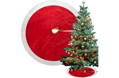 Podložka je vybavená zlatým lemom, ktorým sa dá koberec pripevniť na dve miesta pod stromčekom, takže zostáva pevne na svojom mieste a dekorácie sú perfektne usporiadané.