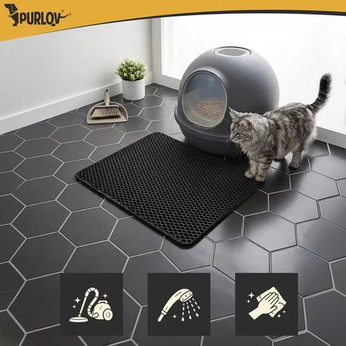 Chcete mať okolo mačacej toalety konečne poriadok bez neustáleho upratovania? Táto podložka Purlov o veľkosti 60 × 45 cm zachytí stelivo z labiek hneď pri odchode mačky a pomôže udržať podlahu čistú.