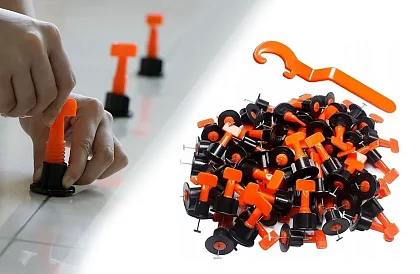 Dokonalý pomocník pri pokladaní dlaždíc poteší všetkých domácich kutilov i profesionálov! S touto súpravou špeciálnych úchytov bude položení dlaždíc, alebo obloženia steny úplná hračka, ktorú zvládnete sami. Použitie je celkom jednoduché, medzi položené, alebo čerstvo nalepenej dlaždice vložíte úchyt, utiahnete maticu a tým vyrovnáte plochu. Po zatuhnutí lepidla úchyt zase vyberiete. Výsledkom je krásne rovný obklad či dlažba
