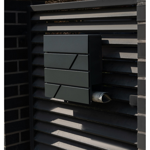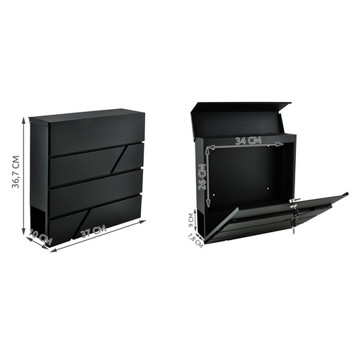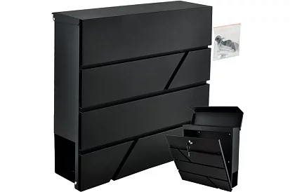 Poštová schránka v elegantnej antracitovej farbe kombinuje odolnosť a praktickosť. Vďaka pozinkovanej ocele je odolná voči korózii a vydrží mnoho sezón. Krytý vhoz umožňuje bezpečné uloženie listov formátu A4, zatiaľ čo spodná tuba pojme zrolované noviny a letáky. Súčasťou balenia sú kľúče aj montážne príslušenstvo, takže inštalácia je rýchla a jednoduchá.