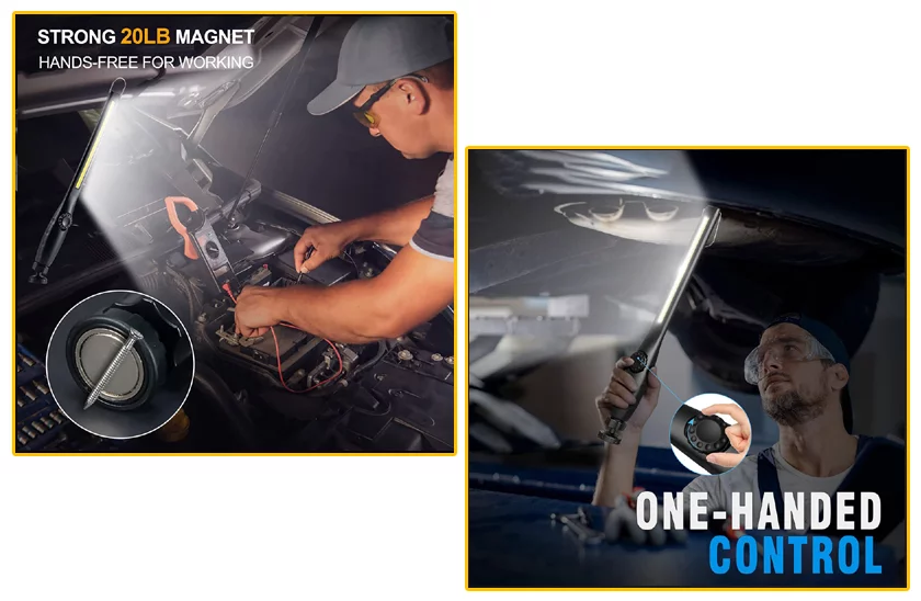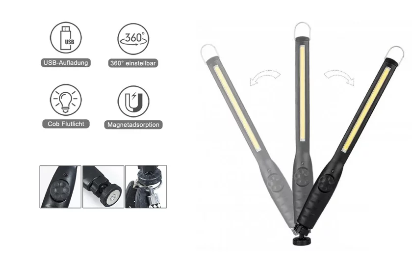 Štíhla konštrukcia samotnej lampy vám umožní osvetliť prácu v ťažko prístupných miestach a magnetická otočná hlava vám poskytne nebývalý pracovný komfort. Multifunkčné pracovné svietidlo nájde uplatnenie ako v dielni, tak vo vonkajších podmienkach, ako batériové svietidlo na kempovanie, pri práci v noci, ako dielenské svietidlo, nočné rybárske svietidlo, alebo na horolezectvo.