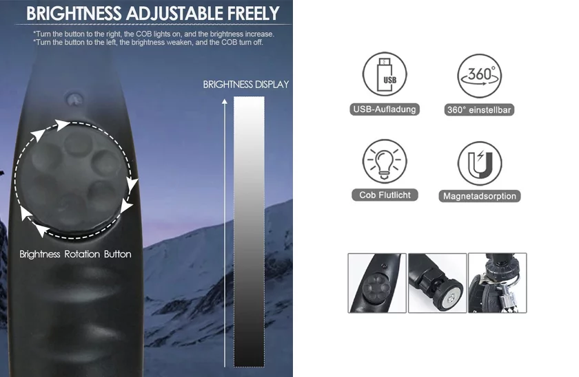Vstavaný magnet na spodnej strane umožňuje pripevniť svietidlo ku kovovým prvkom - vďaka tenkému designu je možnosť svietidlo použiť ako magnetický úchyt. Upravte si intenzitu svetla podľa svojich potrieb – stačí otočiť regulátor pro zmenu jasu svetla.