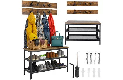 Praktické riešenie pre poriadok a úsporu miesta v predsieni. Poskytuje priestranný botník, vešiak na oblečenie a dve police v jednom dizajne, čo umožňuje mať všetko na dosah ruky. Stabilná konštrukcia z práškovo lakovanej ocele a elegantnej MDF dosky dodávajú interiéru moderný a útulný vzhľad, zatiaľ čo jednoduchá montáž zabezpečuje rýchle a pohodlné zostavenie.
