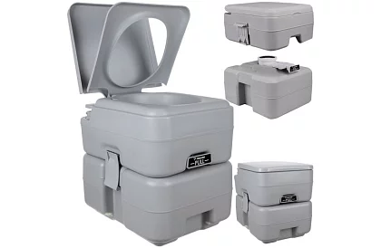 Praktické riešenie pre situácie, kde nie je k dispozícii klasická toaleta. Konštrukcia so zloženými nádržami zabezpečuje vysokú úroveň hygieny, pohodlné používanie a jednoduchú údržbu. Horná časť slúži ako zásobník na vodu o objeme 12 l so splachovacím mechanizmom ovládaným ručným čerpadlom, ktorý efektívne odvádza odpad do spodnej nádrže. Spodná časť ponúka odpadovú nádrž o objeme 20 l, vďaka ktorej je možné toaletu používať dlhší čas bez nutnosti častého vyprazdňovania.