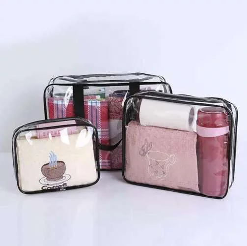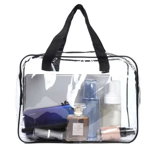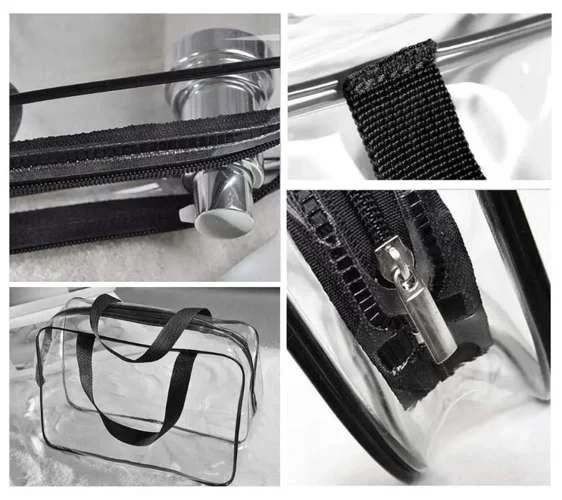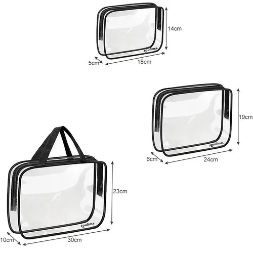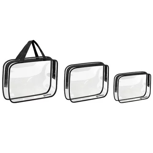 Sada troch praktických priehľadných kozmetických taštičiek rôznych veľkostí je ideálna na organizáciu vašich toaletných potrieb a kozmetiky. Každá taštička umožňuje jednoduchý prístup k obsahu a vďaka priehľadnému materiálu okamžite vidíte, čo potrebujete. Vodotesný PVC materiál chráni obsah pred vlhkosťou a nečistotami, čo zaisťuje bezpečné a pohodlné cestovanie alebo použitie doma. Najväčšia taštička s madlami môže slúžiť aj ako malá prenosná taška na pláž či výlet.