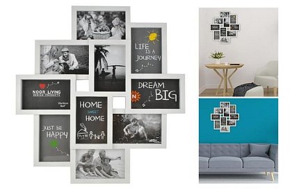 • Atraktívny dekoratívny efekt: originálny tvar rámu a kolážové usporiadanie fotografií