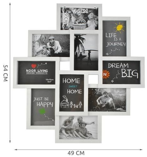 Rám na fotografie je praktický spôsob, ako vystaviť až 10 snímkov na jednom mieste. Originálny kolážový efekt a elegantná biela farba dodajú interiéru štýl a charakter, a pritom ušetria miesto v porovnaní so samostatnými rámami. Plastová konštrukcia zaisťuje bezpečnosť aj v domácnostiach s deťmi alebo domácimi miláčikmi.